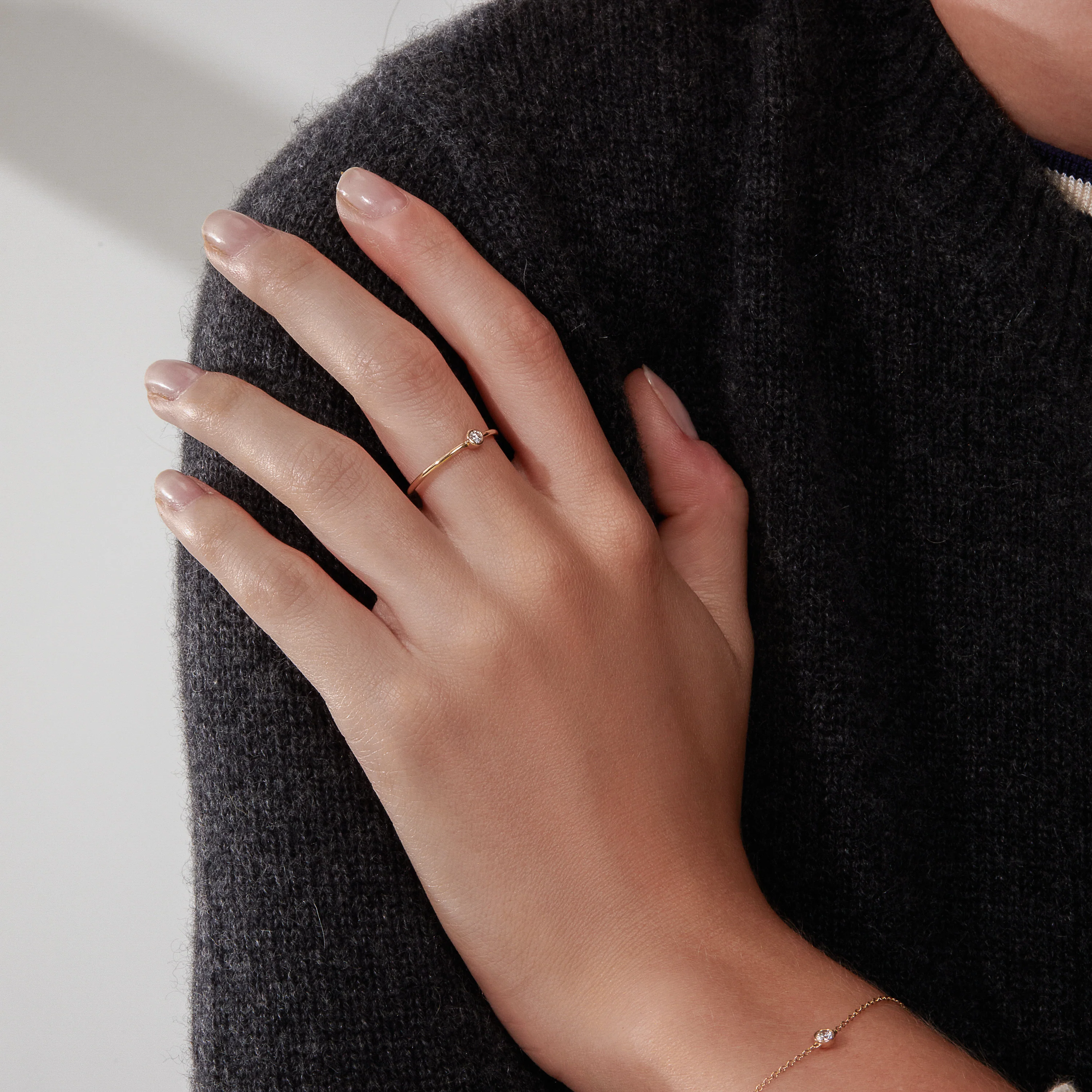 14k Solid Gold Diamond Solitaire Bezel Ring